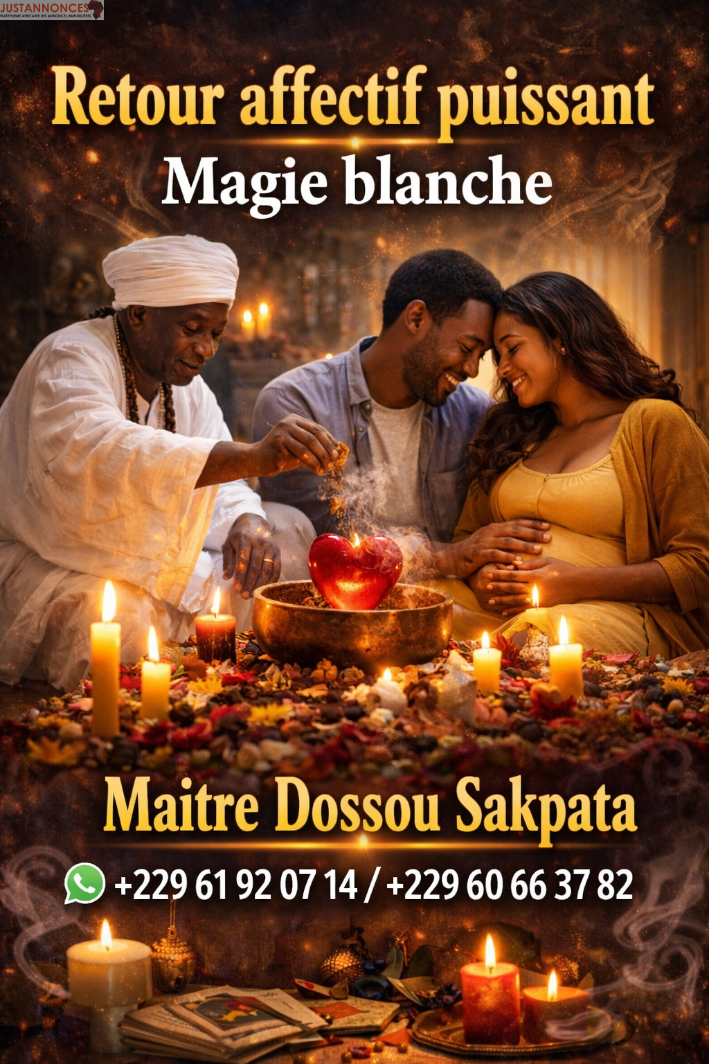 Toute personne confrontée à un problème amoureux ou souhaitant attirer un amour sincère et durable peut contacter le Grand Maître Dossou Sakpata en toute confiance.