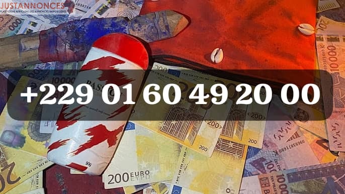 +229 01 60 49 20 00 La multiplication d’argent rapide avec le grand maître marabout PAPA GBEFA du Bénin est une méthode parle laquelle vous multiplie une somme importante en quelques minutes. Vous n’avez pas de frais d’ingrédient à payer, pas de matériels à payer.Blanchissement ou Multiplication d’argent c’est une stratégie pour aider toutes les personnes qui sont dans le besoin d’argent rapide et qui ne veulent pas faire le portefeuille magique ni la valise magique