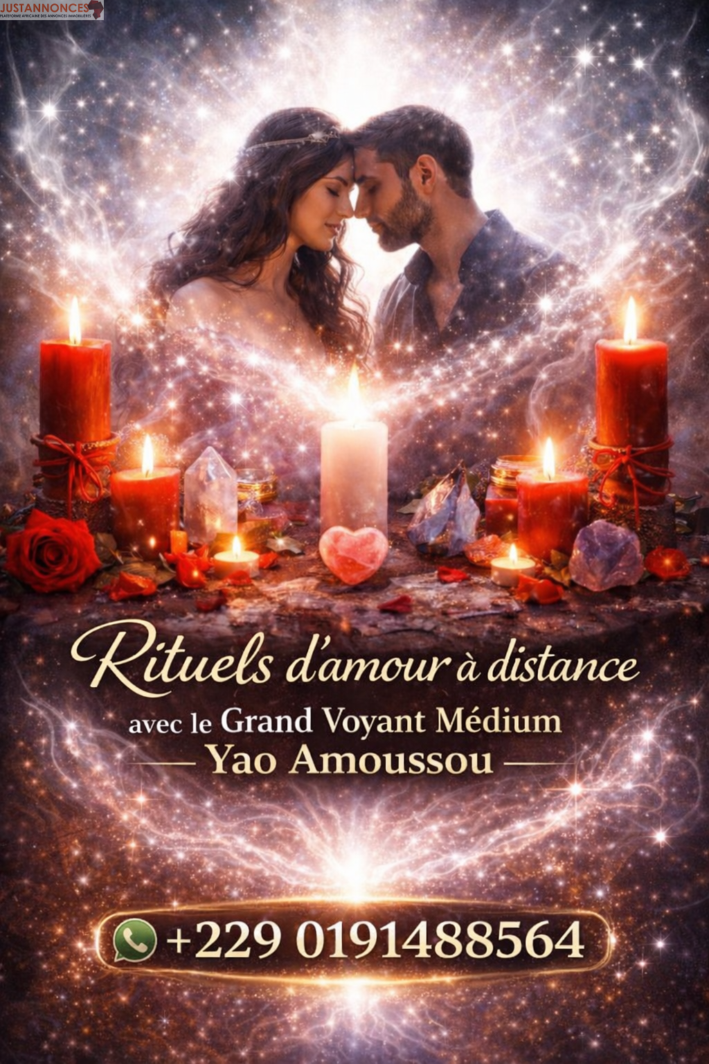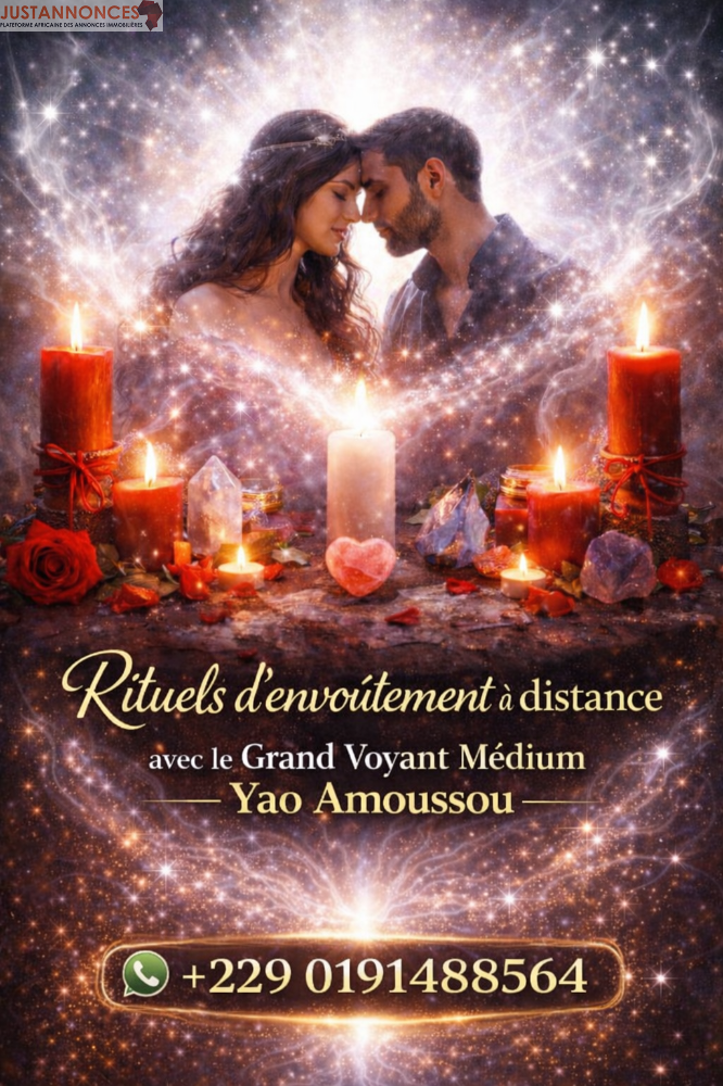 L'envoutement amoureux est une forme inoffensive de reprendre son ex copain ou ex mari sans qu'il ne sente rien sur lui a part ton amour qui envahira tous son être et sans que cette dernière ne soit avec toi il pourra pas se sentir heureux. Cette forme de magie s'accompagne d'un grand nombre de rituels dont j'en connais la recette. Le puissant rituel d'amour est une pratique ésotérique qui vise à attirer l’amour de votre vie vers vous en utilisant des rituels d'amour efficace et des astuces secrètes qui agissent sur les forces de la nature et de l’invisible. Le rituel de retour affectif puissant du marabout medium voyant Yao Amoussou peut influencer le sommeil et les pensées de votre ex partenaire et vous aider à rétablir l’harmonie et la complicité dans votre relation amoureuse. Il faut toutefois être patient et analyser votre situation avant de recourir à cette pratique. C'est pourquoi une consultation est bien nécessaire au début des travaux spirituels