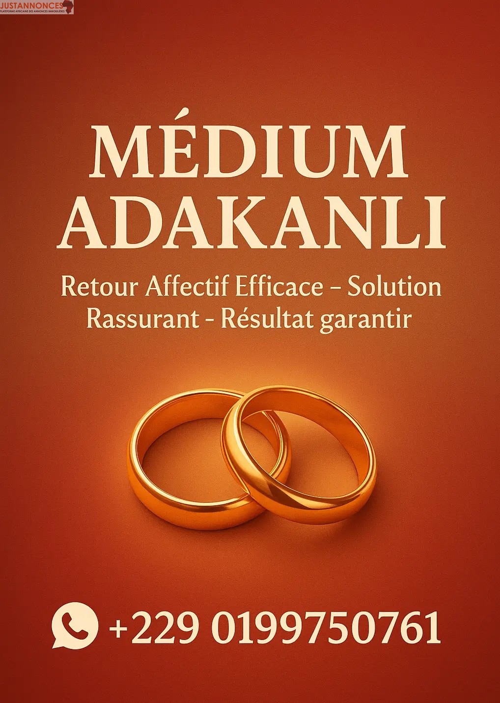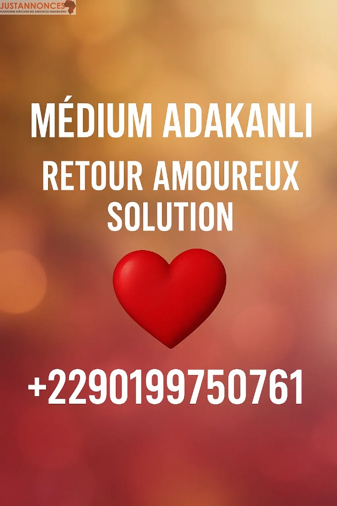 Si vous êtes dans une relation difficile, si vous souhaitez ramener votre bien aimé, si vous souhaitez en savoir plus sur vos relations amoureuses actuelle qui tente vers la fin, si vous avez des problèmes dans votre couple le medium marabout expérimenter adakanli va s’engager à vous aider à chasser cette douloureuse peine de cœur qui vous empêche de vivre votre vie pleinement.
